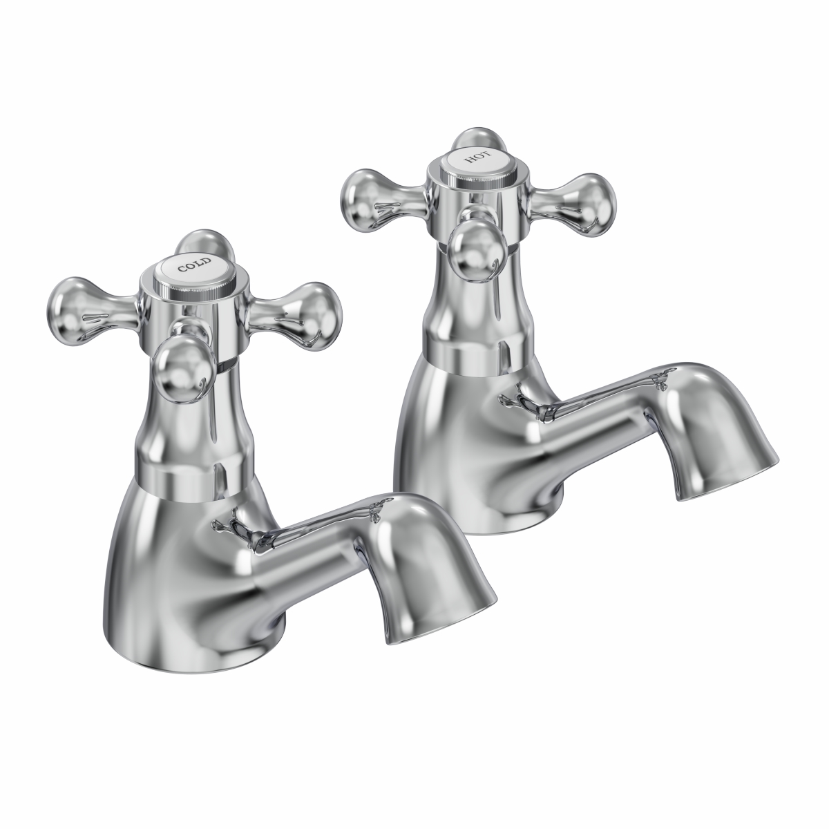 Upgrade your bathroom with our traditional basin pillar taps. Designed to bring a touch of sophistication and elegance to your space, its sleek chrome and white finish will perfectly match any bathroom style. Providing you with that sought after traditional charmish look you desire.