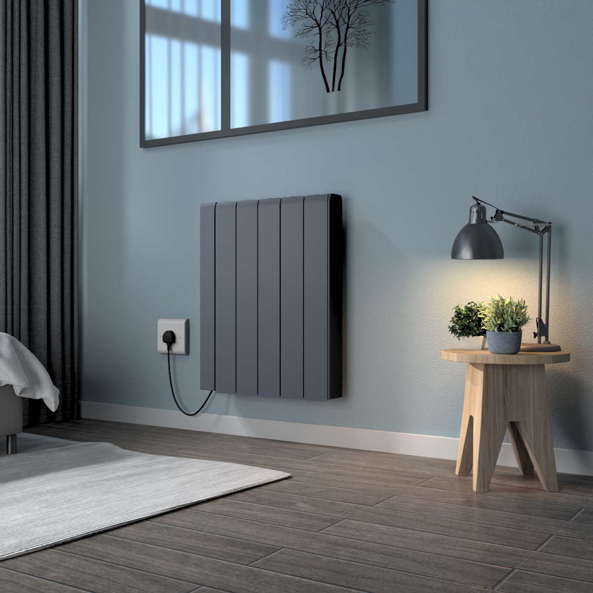 - Contemporary electric radiator design that adds a modern touch to any living space.