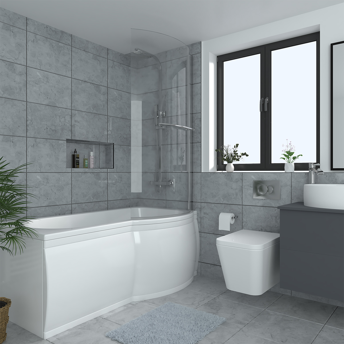 The 785mm chrome polished P shape bath screen is a modern bathroom upgrade that will keep water in your bath, and away from the floor.