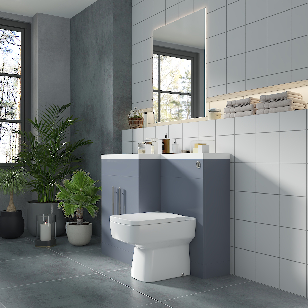 Calm Gloss Grey Left Hand Combination Vanity Unit Basin L Shape with Back to Wall Boston Toilet & Soft Close Seat & Concealed Cistern - 1100mm