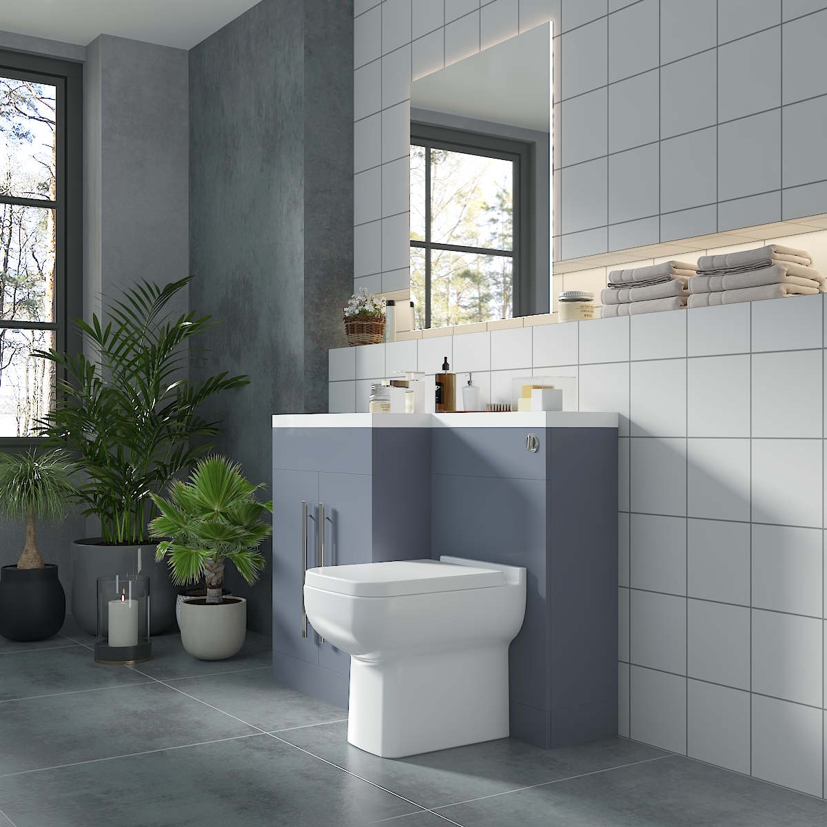 Calm Gloss Grey Left Hand Combination Vanity Unit Basin L Shape with Back to Wall Feel 600 Toilet & Soft Close Seat & Concealed Cistern - 1100mm