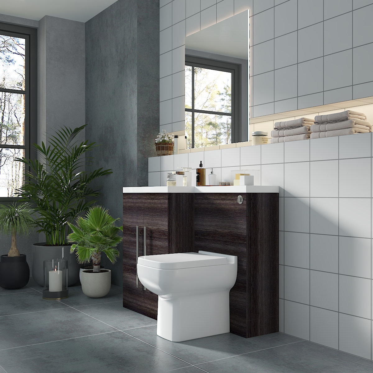 Calm Grey Left Hand Combination Vanity Unit Basin L Shape with Back to Wall Feel 600 Toilet & Soft Close Seat & Concealed Cistern - 1100mm