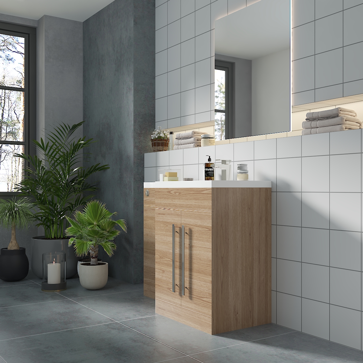 Upgrade your bathroom with a combination vanity unit that is both functional and fashionable. With a space-saving design and an easy clean light oak colour finish, you will be loving your bathrooms new look!