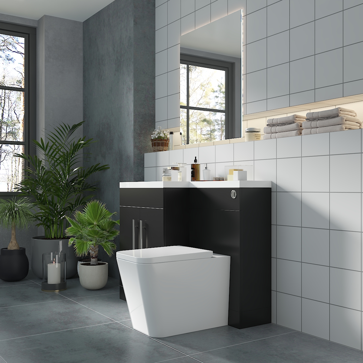 Calm Matt Black Left Hand Combination Vanity Unit Basin L Shape with Back to Wall Cordoba Square Toilet & Soft Close Seat & Concealed Cistern - 1100mm