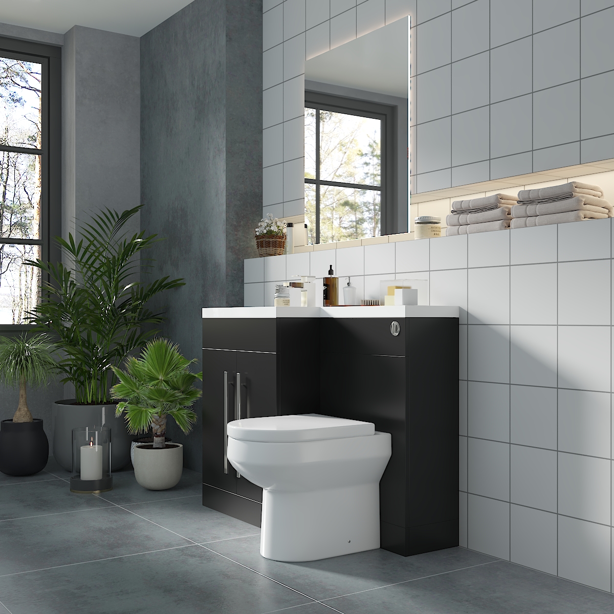 Calm Matt Black Left Hand Combination Vanity Unit Basin L Shape with Back to Wall Calgary Toilet & Soft Close Seat & Concealed Cistern - 1100mm