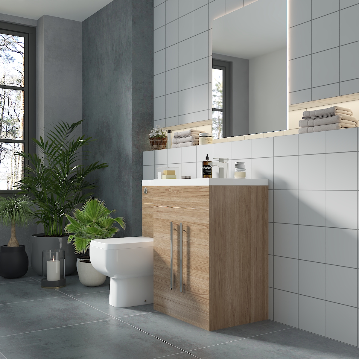 Calm Oak Right Hand Combination Vanity Unit with RAK-Series 600 Toilet