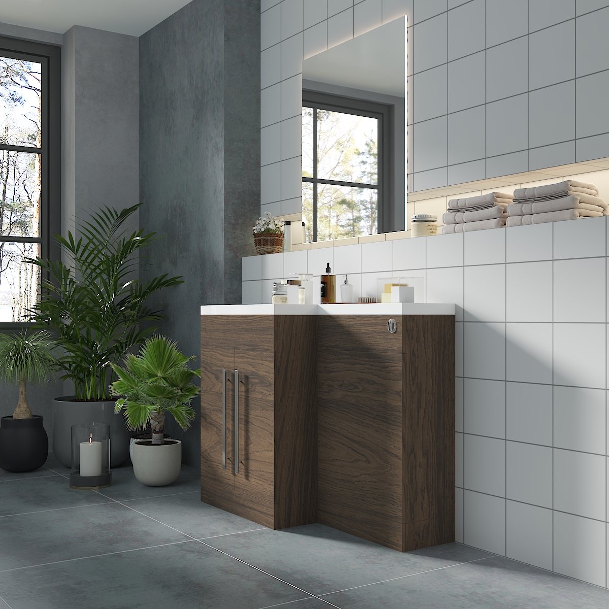 Upgrade your bathroom with a combination vanity unit that is both functional and fashionable. With a space-saving design and an easy clean walnut colour finish, you will be loving your bathrooms new look!