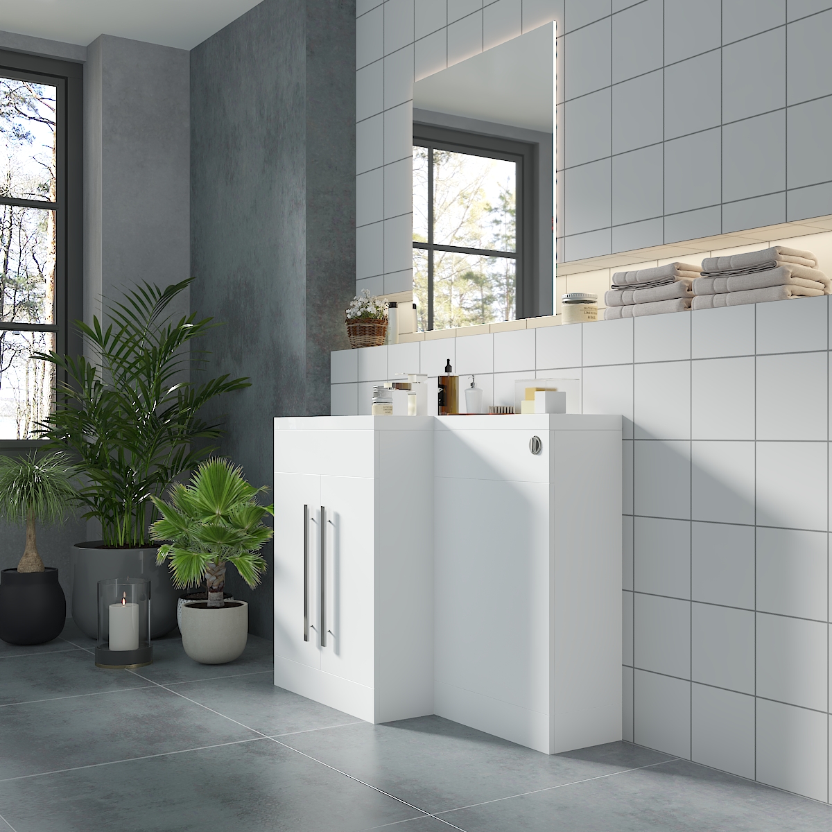 Calm White Left Hand Combination Vanity Unit Set with Concealed Cistern (No Toilet) - 1100mm