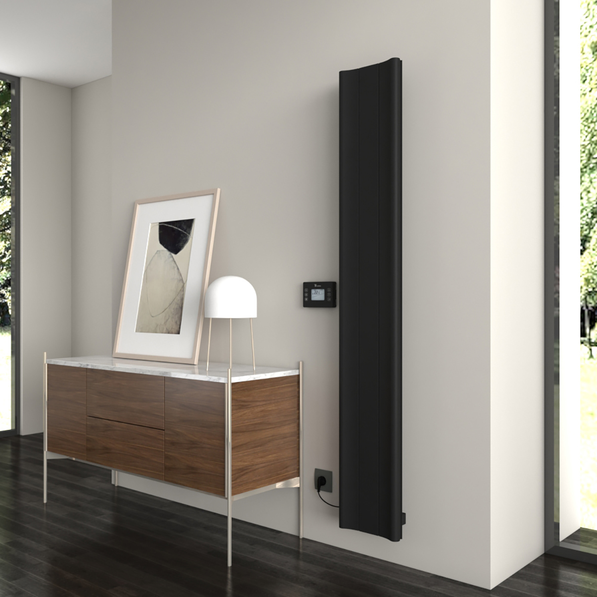 The new Boreas electric radiator is an excellent choice for your decorations, with its elegant design, lightweight structure and high heat efficiency. The Boreas B radiator is painted in striking Black colour, this radiator effortlessly blends into any room.