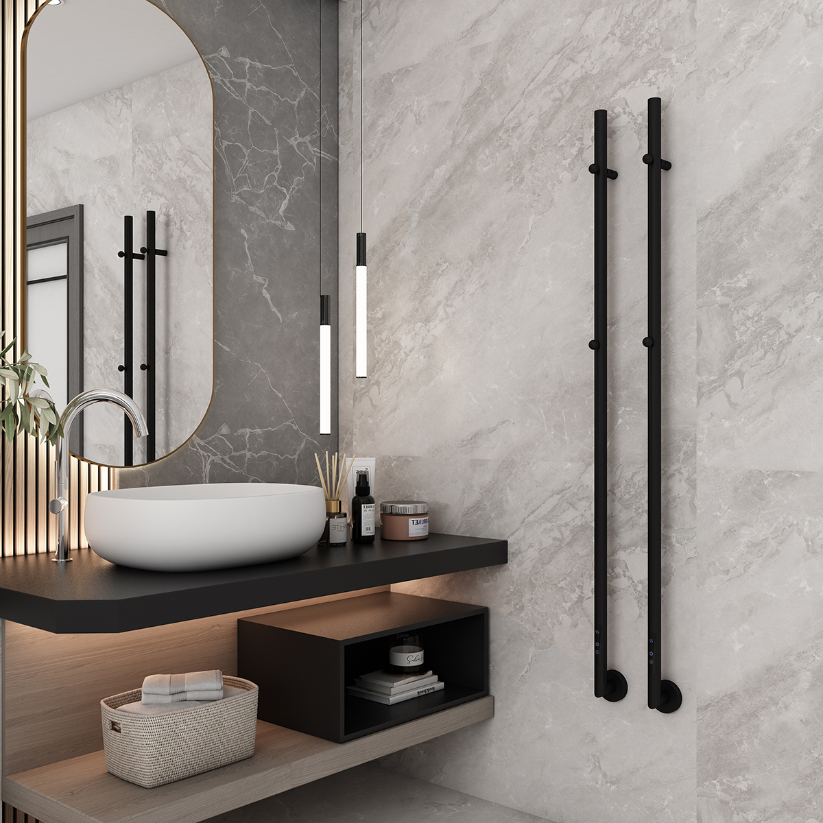 The new Dante electric towel rail is an excellent choice for your decorations, with its elegant design, lightweight structure and high heat efficiency. The Dante towel rail is painted in striking Matt Black colour, this gorgeous towel rail design gives your new bathroom a clean, sleek look.