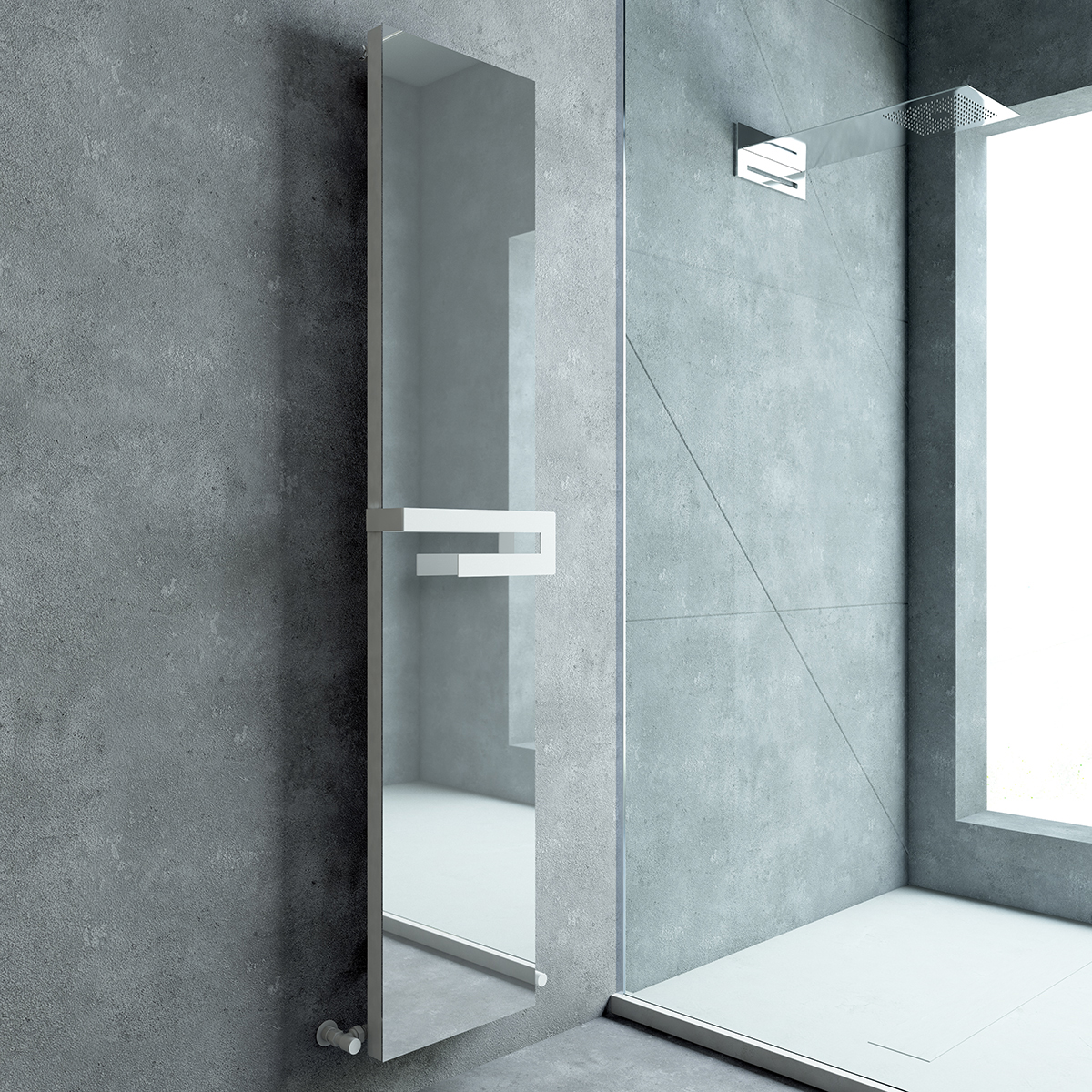 Carisa Elvino Bath Mirror 1800 x 370mm White Designer Aluminium Towel Rail