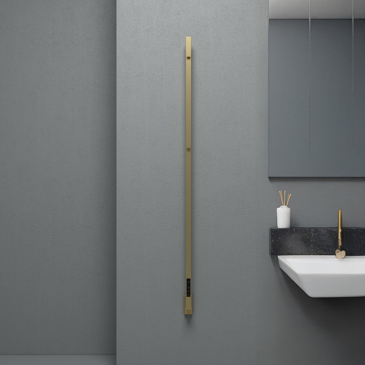 The new Maxim electric towel rail is an excellent choice for your decorations, with its elegant design, lightweight structure and high heat efficiency. The Maxim towel rail is painted in striking Brushed Brass Anodized colour, this gorgeous towel rail design gives your new bathroom a clean, sleek look.