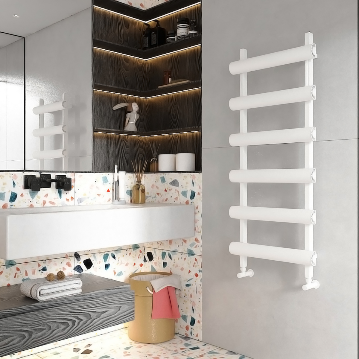 Carisa Moon 1200 x 500mm White Designer Aluminium Towel Rail