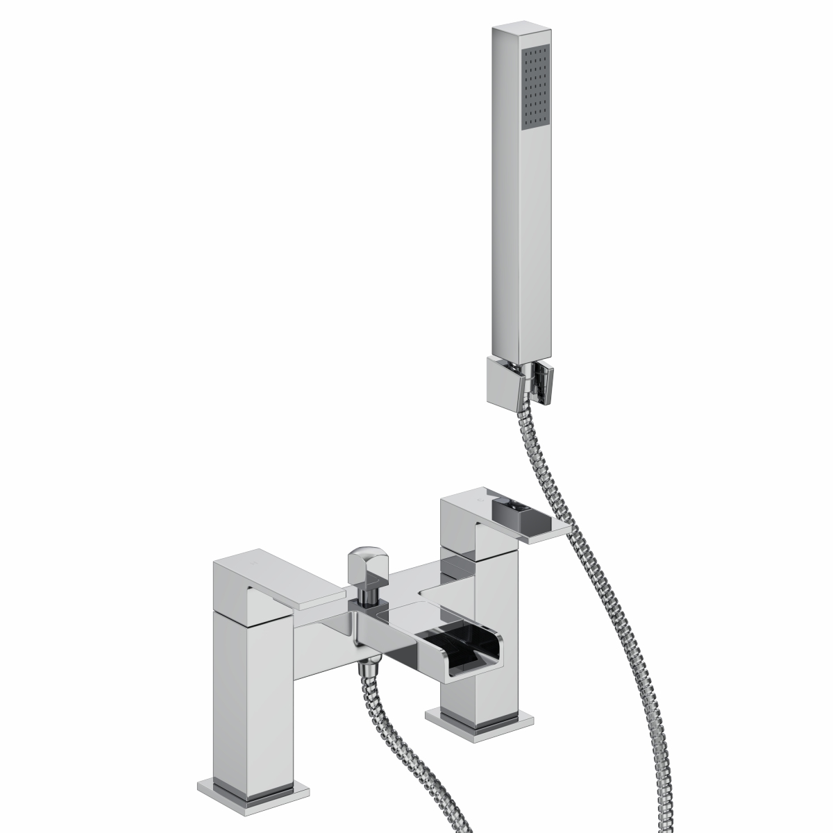 Edessa Modern Waterfall Bath Shower Mixer Tap with Hand Shower - Chrome