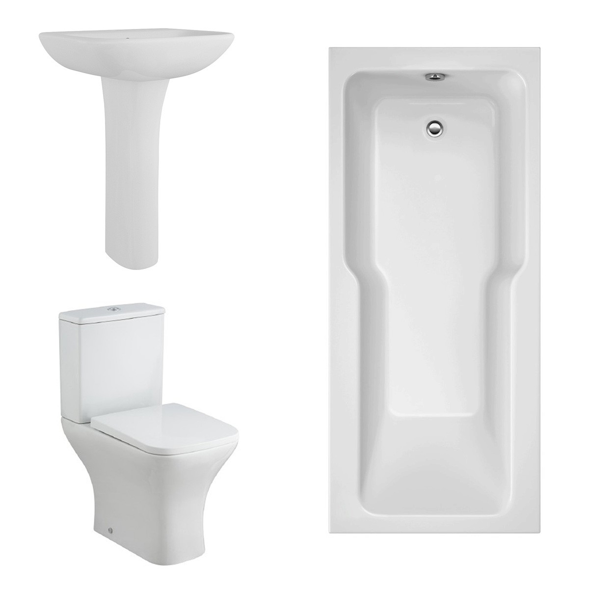 This on-trend suite comes with a close coupled toilet, a spacious single-ended bath (measuring 550mm and 1700mm x 750mm) and a pedestal basin. Each element of this bathroom suite perfectly complements each other, giving you a coordinated style to your new bathroom.