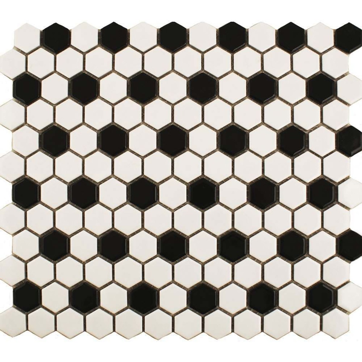 Pixel Chequer Hexagon White & Black Matt 23x23