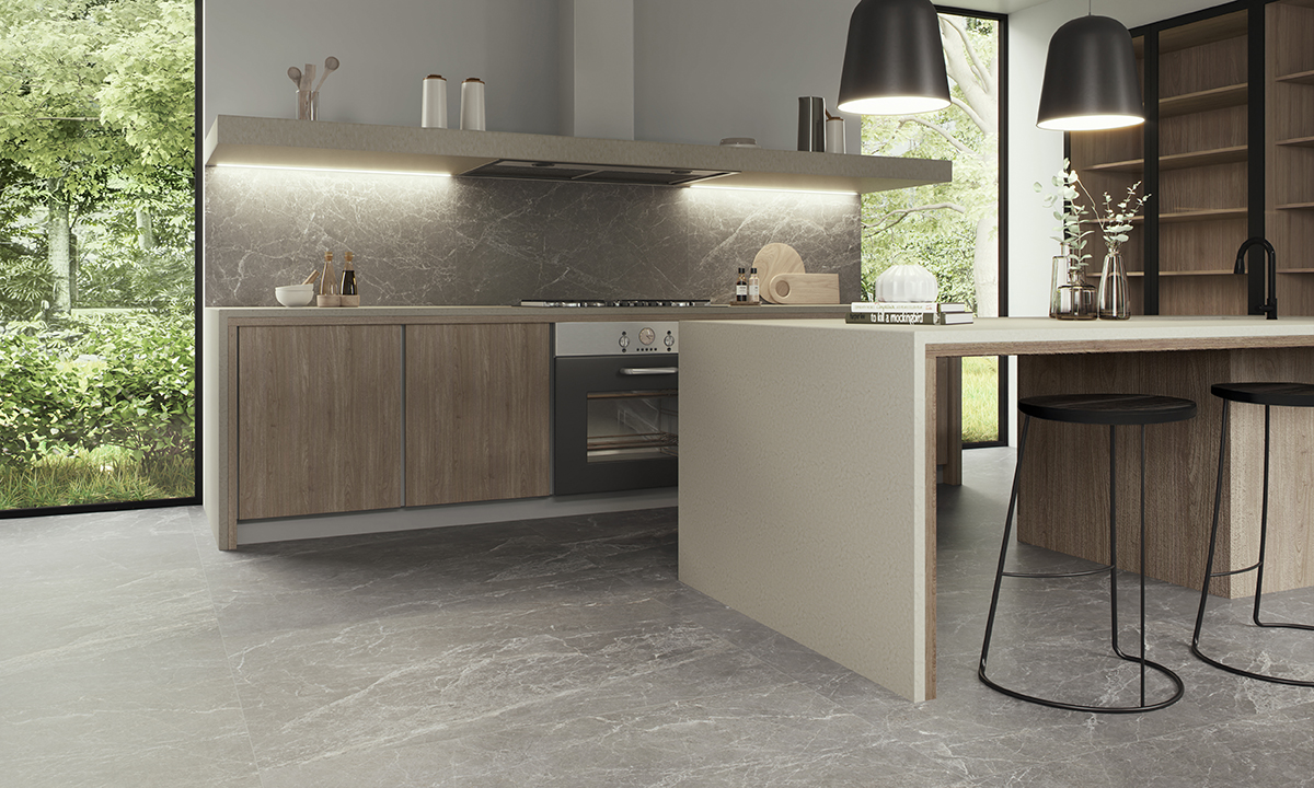 Murano Gris is a striking large 1200x600mm format porcelain tile that showcases a deep grey marble effect with intricate veining, perfect for adding a modern touch to any interior space. With a matt finish, rectified edges, and 14 unique face variations, this durable tile is ideal for both walls and floors.