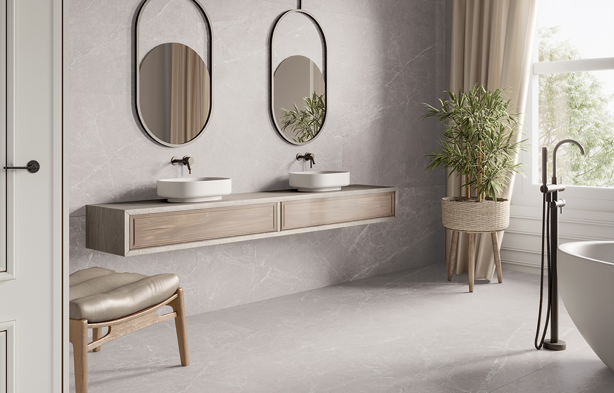 Murano Perla is a striking large 1200x600mm format porcelain tile that showcases a versatile grey marble effect with intricate veining, perfect for adding a modern touch to any interior space. With a matt finish, rectified edges, and 14 unique face variations, this durable tile is ideal for both walls and floors.