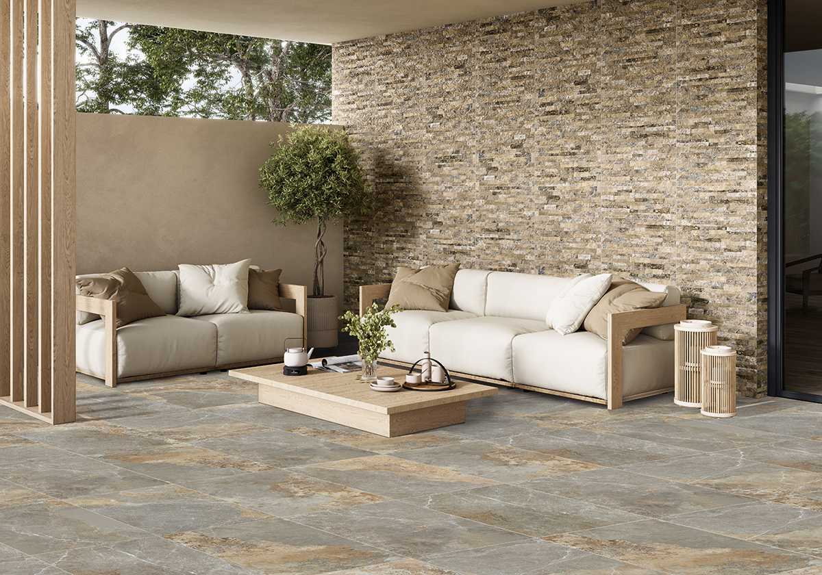 Discover the Strato Slate Effect Tile, a rustic and multi-tonal choice perfect for both interior and exterior walls and floors. Measuring 1200x595mm with a 10mm thickness, this tile features rectified edges, a natural light grey finish, 11 unique face variations, and a beautifully textured riven surface.