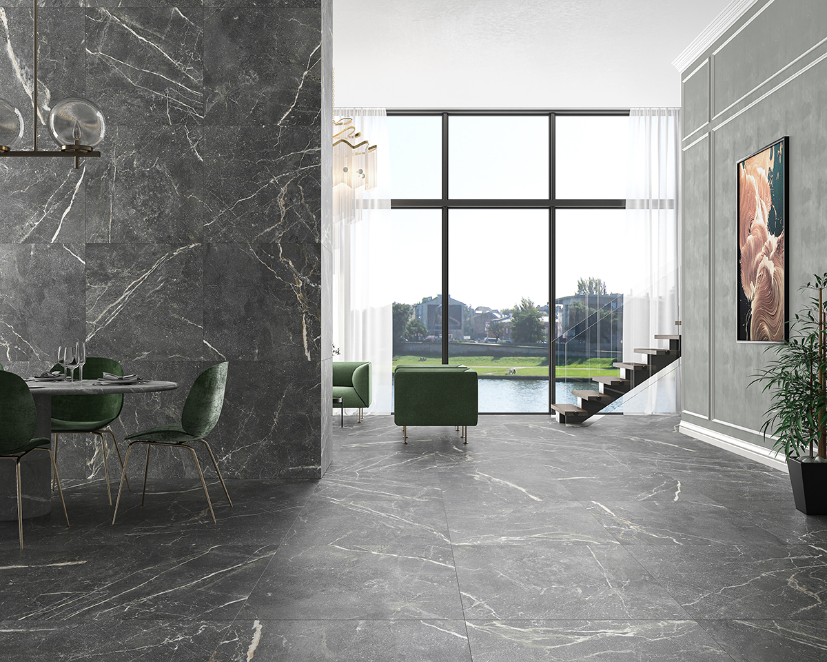 Discover the Toulouse Dark tile, a porcelain tile that brings the beauty of natural stone effect with detailed veining and striking dark grey colouring to any interior walls and floors. With its matt finish, square 900x900mm format, 10.5mm thickness, 10 unique face variations and rectified edges, it's the perfect blend of durability and style.