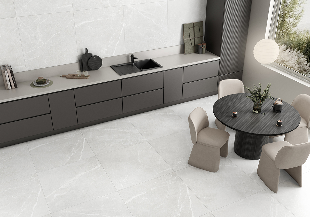 Discover the Toulouse White tile, a coloured body porcelain tile that brings the beauty of a light stone effect with detailed veining and bright white colouring to any any interior walls and floors. With its matt finish, square 900x900mm format, 9mm thickness, 10 unique face variations, rectified edges, and a PTV 36+ slip rating, it's the perfect blend of durability and style - making it ideal for wetrooms and bathrooms.