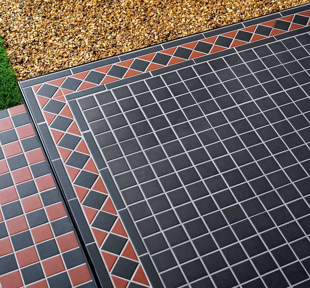These Victorian Black Mosaic Tiles have a stylish Victorian design in a matt finish. They're made from porcelain and measure 291x291x6mm. R11 and PTV 36+ rated, suitable for use across wetrooms and exterior designs
