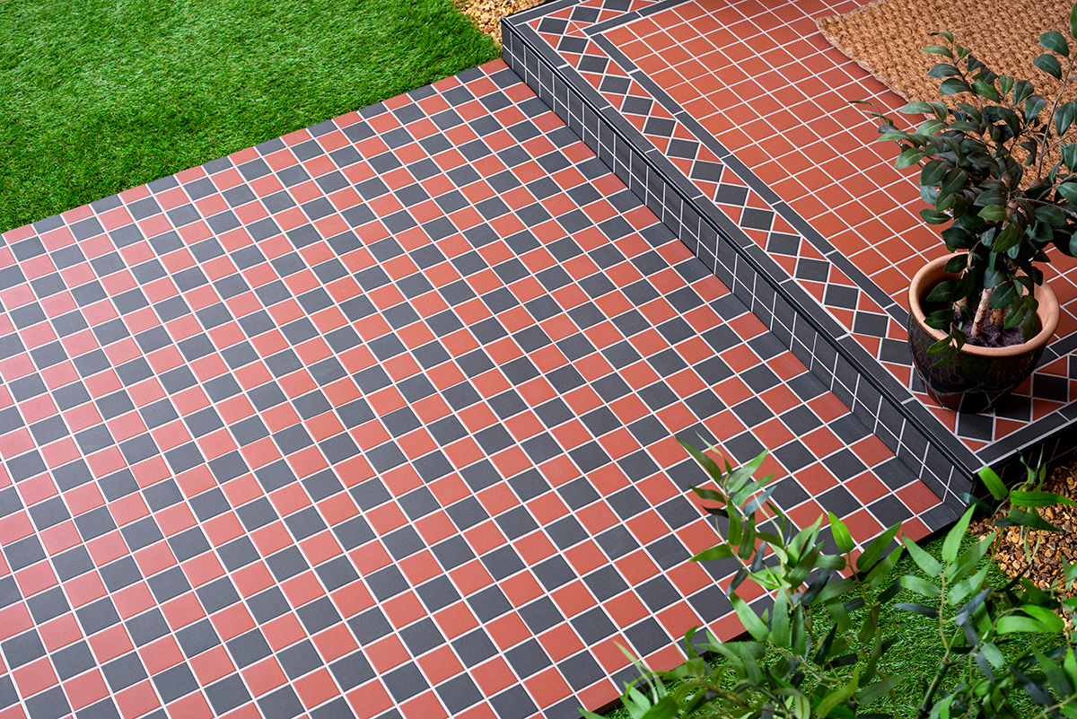 These Victorian Red & Black Chequer Mosaic Tiles have a stylish Victorian design in a . They're made from porcelain and measure 291x291mm. R11 and PTV 36+ rated, suitable for use across wetrooms and exterior designs