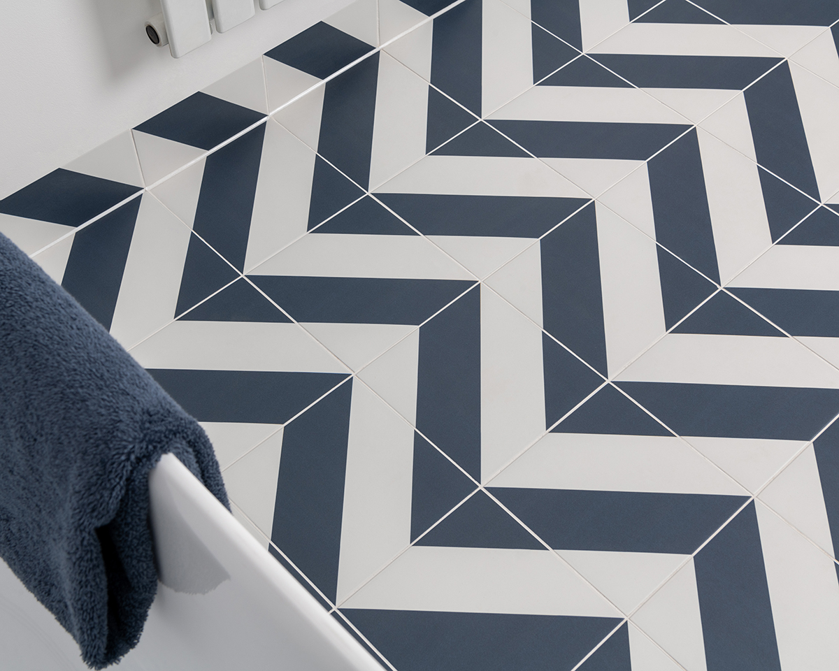 Discover the unique charm of our Zebra Blue tiles, featuring a striking inked effect and geometric striped pattern in a classy navy blue and white hue, perfect for creating an array of patterns on both interior and exterior walls and floors. Crafted from strong porcelain with a sophisticated matt finish, this tile brings a blend of style and practicality to any space.